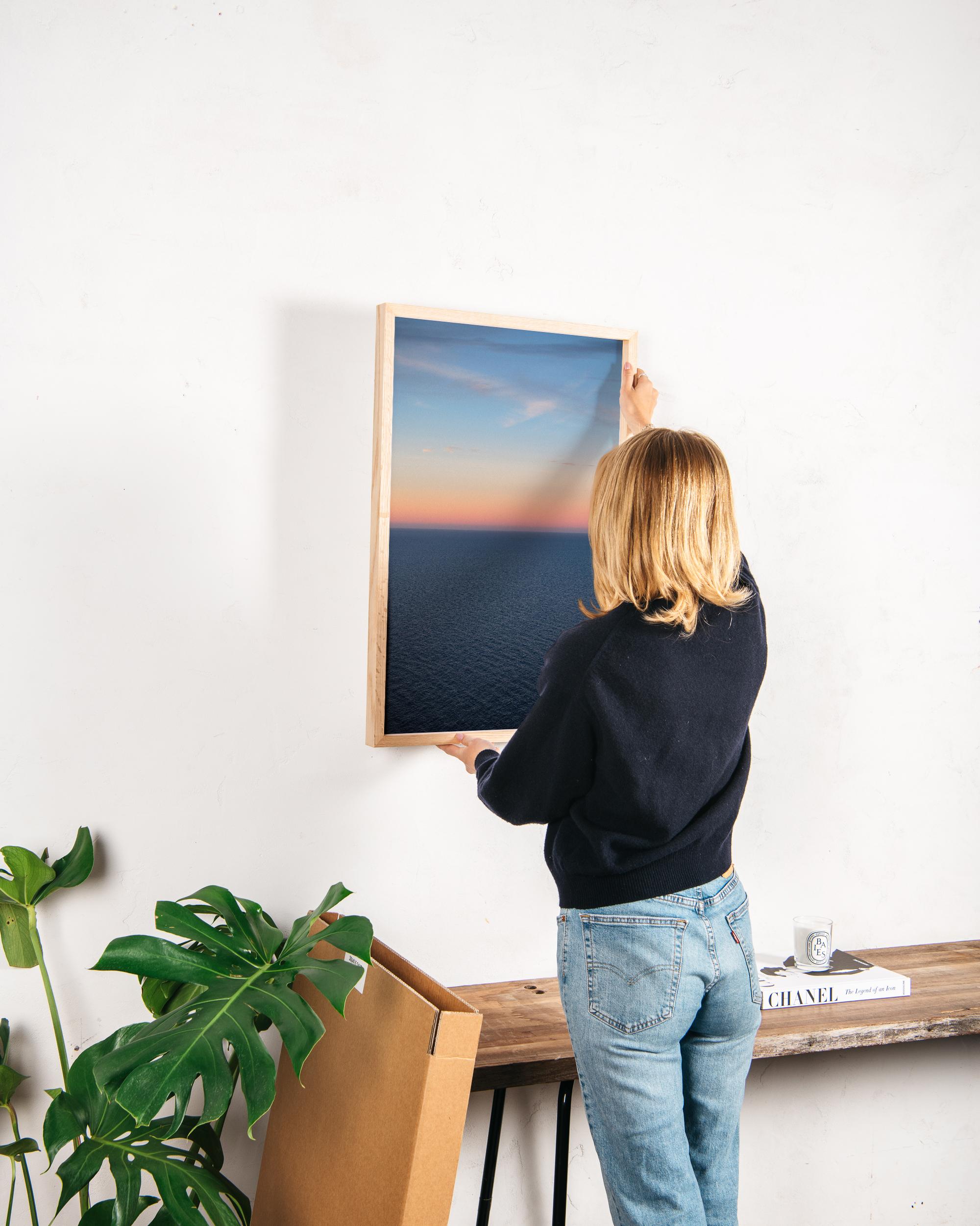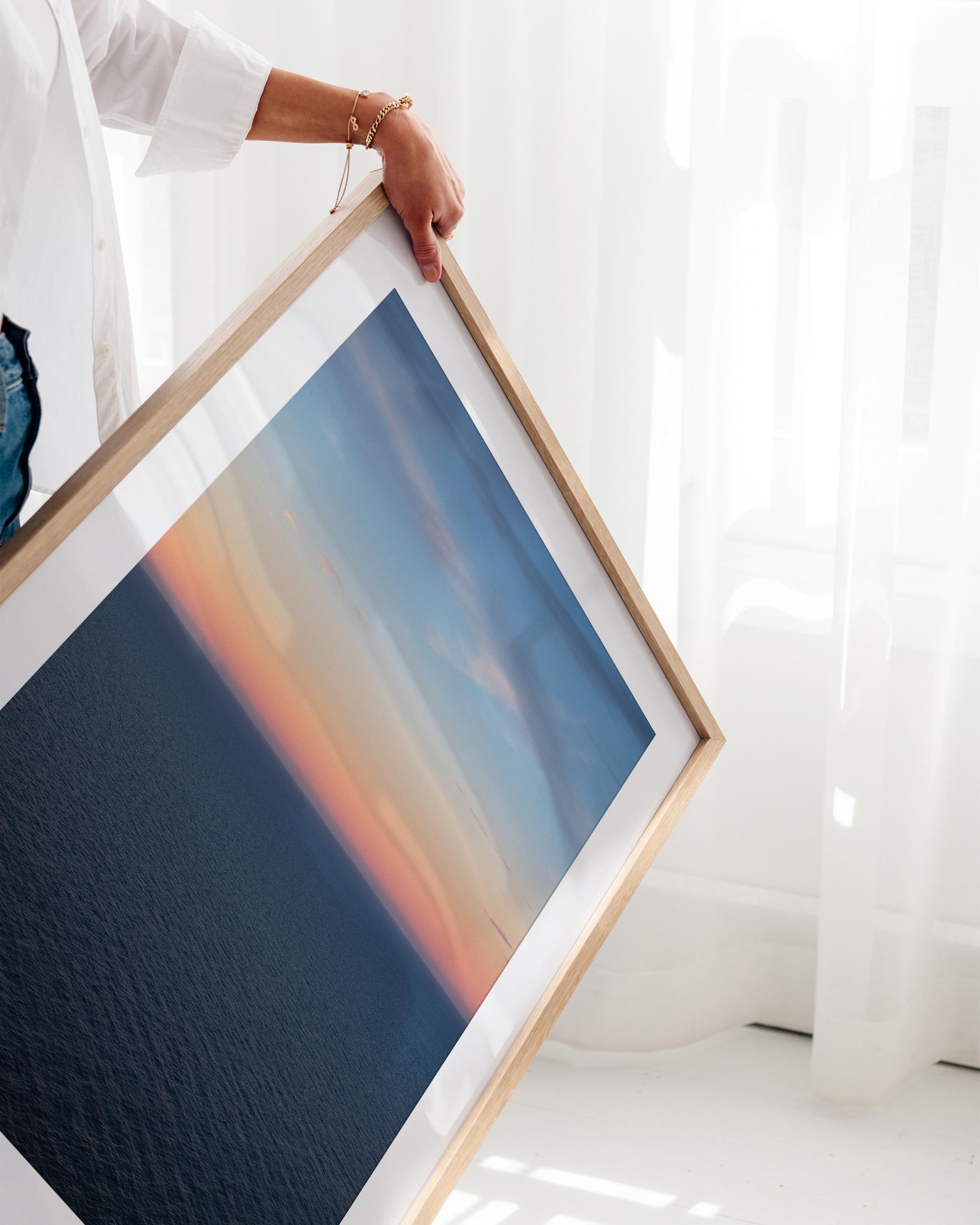 Each frame is crafted from solid ash, carefully milled and hand-finished to highlight the natural beauty of the wood. A specialist wax enriches the grain and protects the surface, giving a subtle lustre that endures for a lifetime. The box profile creates a strong gallery-style presence that draws the eye to the photograph. Assembled by hand and fitted with professional hardware, every frame arrives ready to hang from the moment you open the box.