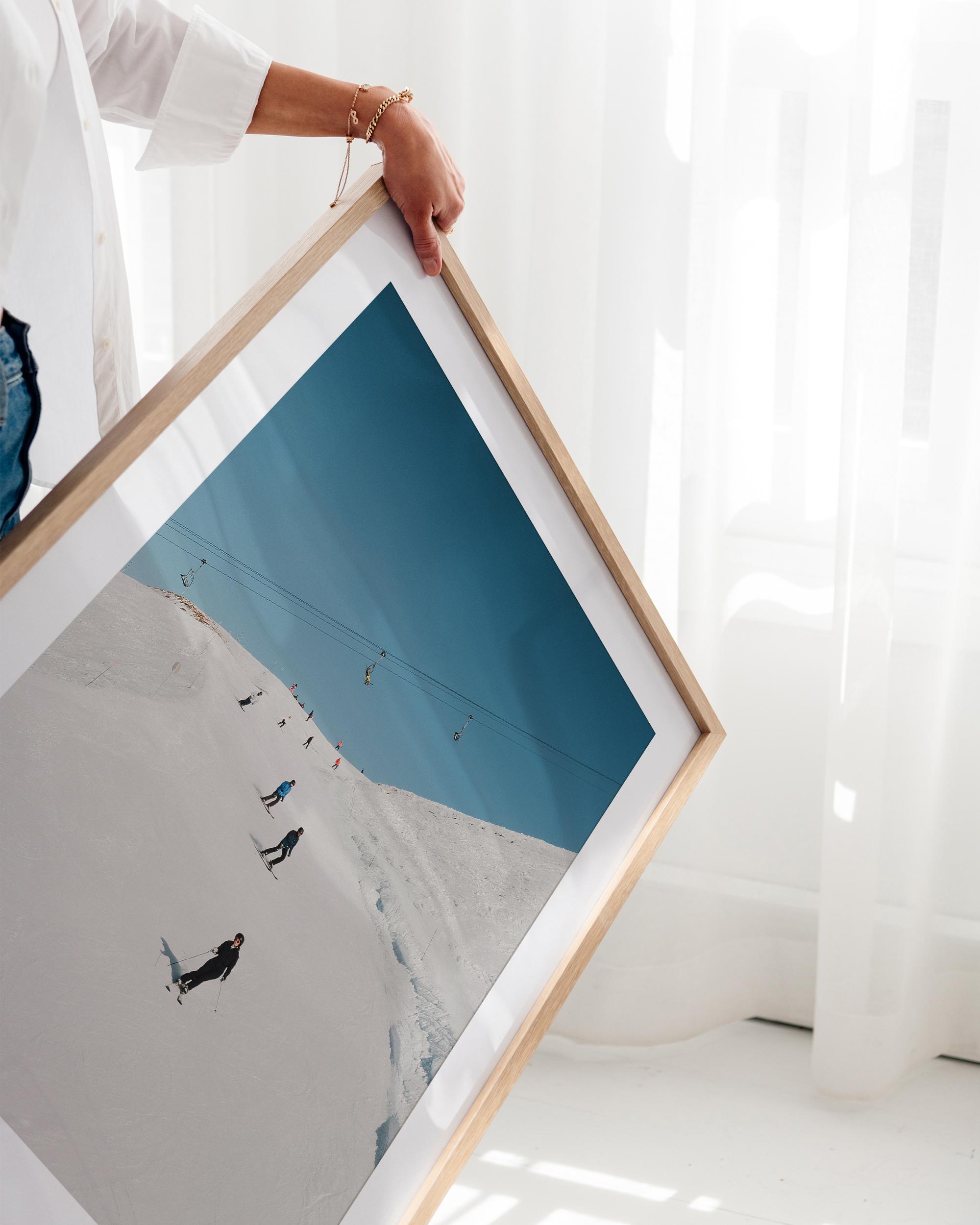 Each frame is crafted from solid ash, carefully milled and hand-finished to highlight the natural beauty of the wood. A specialist wax enriches the grain and protects the surface, giving a subtle lustre that endures for a lifetime. The box profile creates a strong gallery-style presence that draws the eye to the photograph. Assembled by hand and fitted with professional hardware, every frame arrives ready to hang from the moment you open the box.