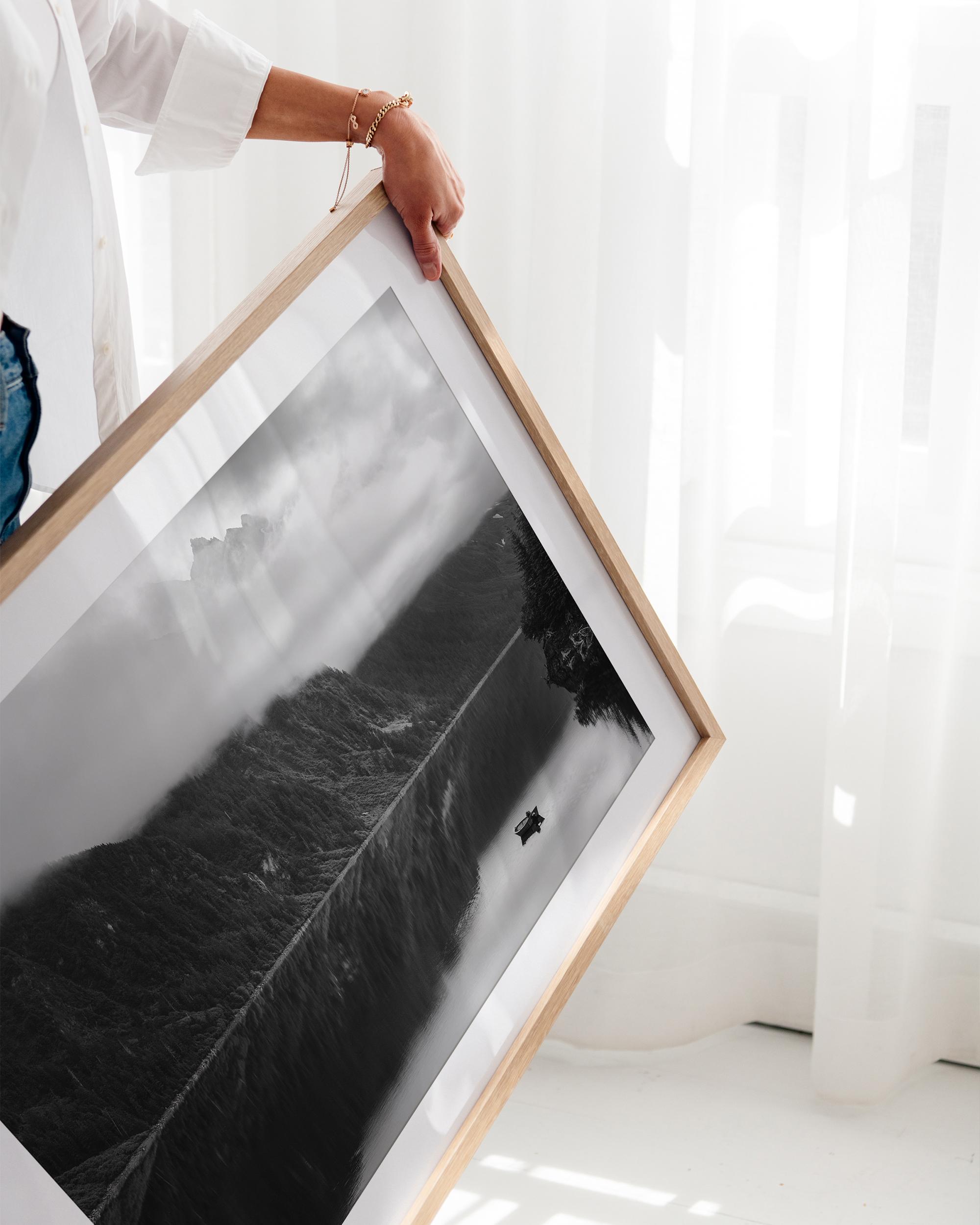Each frame is crafted from solid ash, carefully milled and hand-finished to highlight the natural beauty of the wood. A specialist wax enriches the grain and protects the surface, giving a subtle lustre that endures for a lifetime. The box profile creates a strong gallery-style presence that draws the eye to the photograph. Assembled by hand and fitted with professional hardware, every frame arrives ready to hang from the moment you open the box.