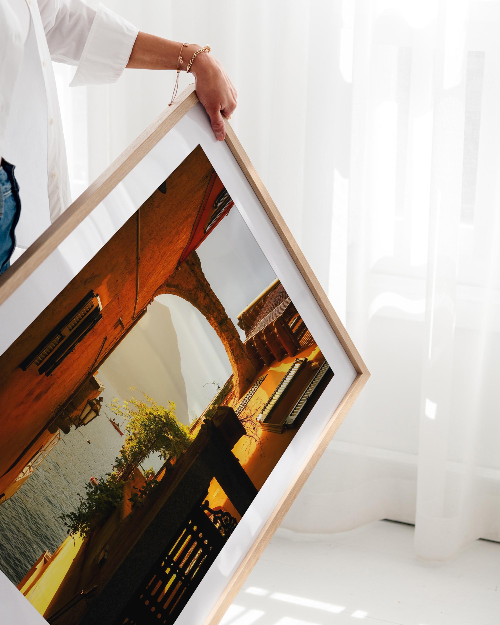 Each frame is crafted from solid ash, carefully milled and hand-finished to highlight the natural beauty of the wood. A specialist wax enriches the grain and protects the surface, giving a subtle lustre that endures for a lifetime. The box profile creates a strong gallery-style presence that draws the eye to the photograph. Assembled by hand and fitted with professional hardware, every frame arrives ready to hang from the moment you open the box.