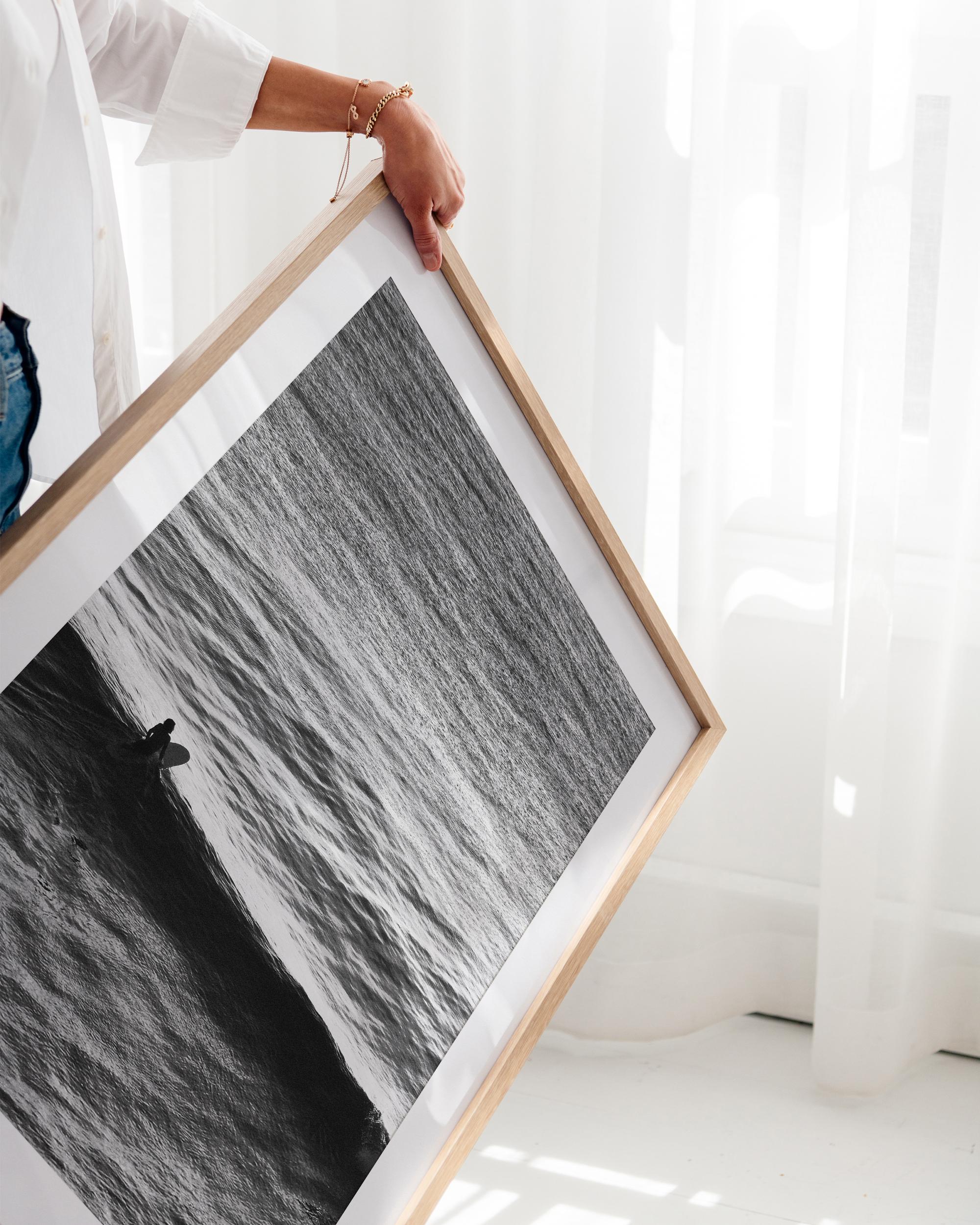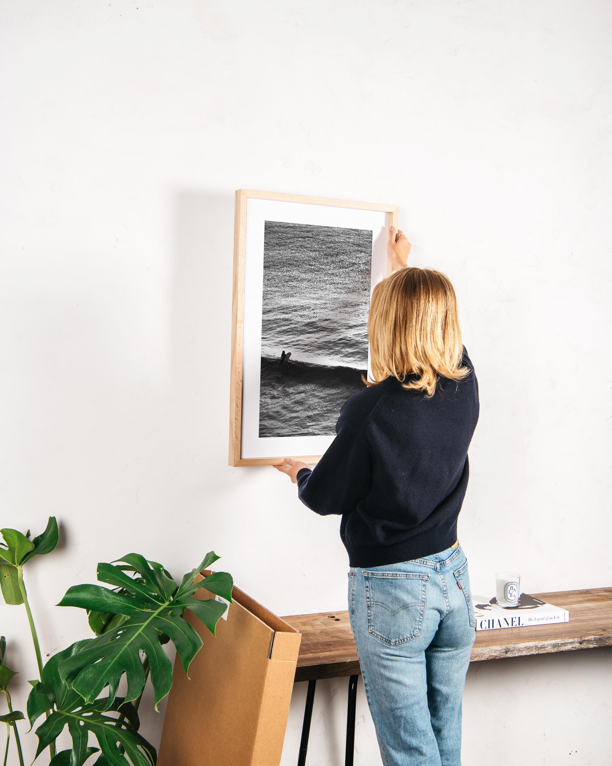 Each frame is crafted from solid ash, carefully milled and hand-finished to highlight the natural beauty of the wood. A specialist wax enriches the grain and protects the surface, giving a subtle lustre that endures for a lifetime. The box profile creates a strong gallery-style presence that draws the eye to the photograph. Assembled by hand and fitted with professional hardware, every frame arrives ready to hang from the moment you open the box.