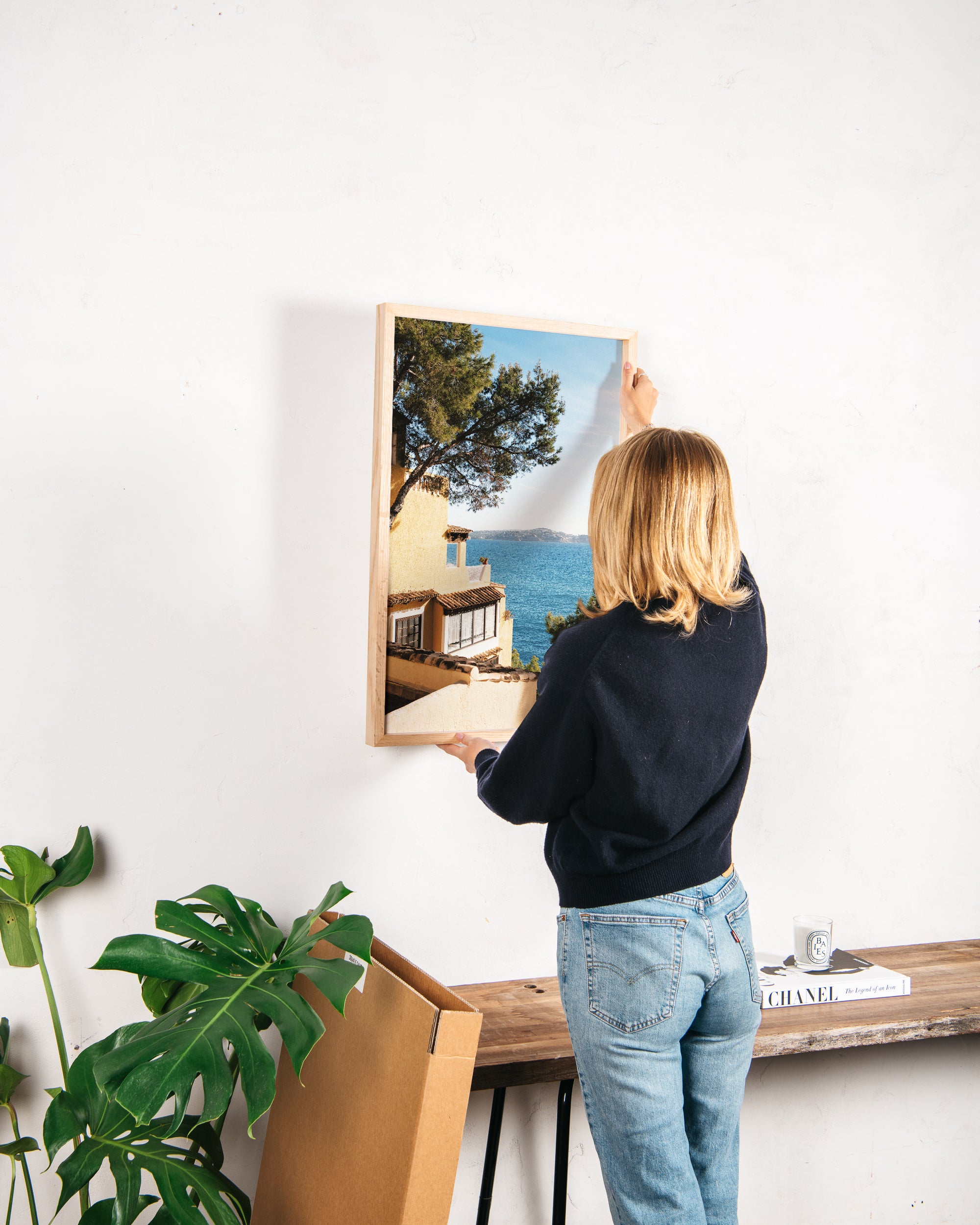 Each frame is crafted from solid ash, carefully milled and hand-finished to highlight the natural beauty of the wood. A specialist wax enriches the grain and protects the surface, giving a subtle lustre that endures for a lifetime. The box profile creates a strong gallery-style presence that draws the eye to the photograph. Assembled by hand and fitted with professional hardware, every frame arrives ready to hang from the moment you open the box.