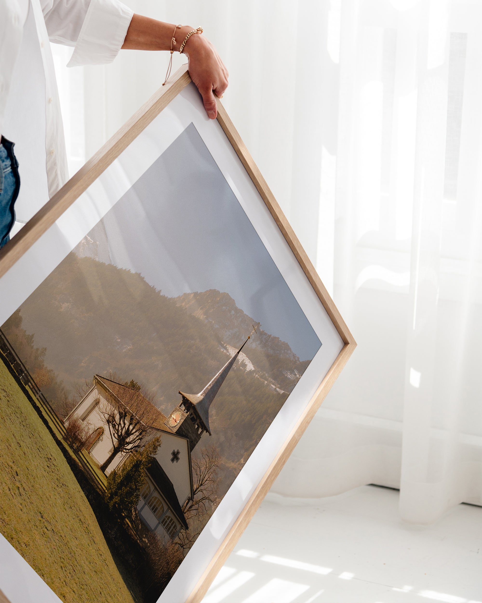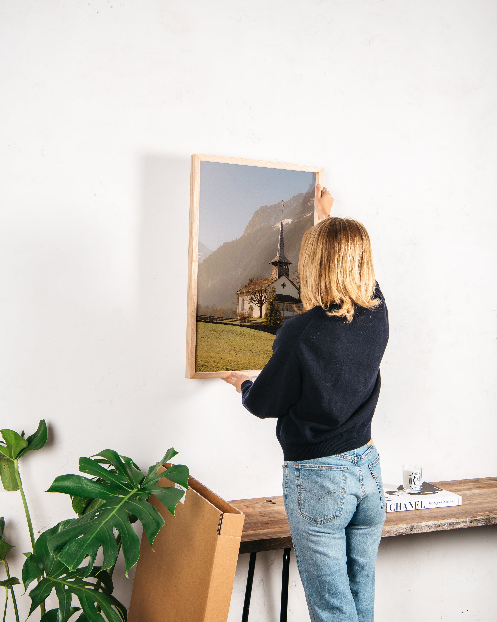 Each frame is crafted from solid ash, carefully milled and hand-finished to highlight the natural beauty of the wood. A specialist wax enriches the grain and protects the surface, giving a subtle lustre that endures for a lifetime. The box profile creates a strong gallery-style presence that draws the eye to the photograph. Assembled by hand and fitted with professional hardware, every frame arrives ready to hang from the moment you open the box.
