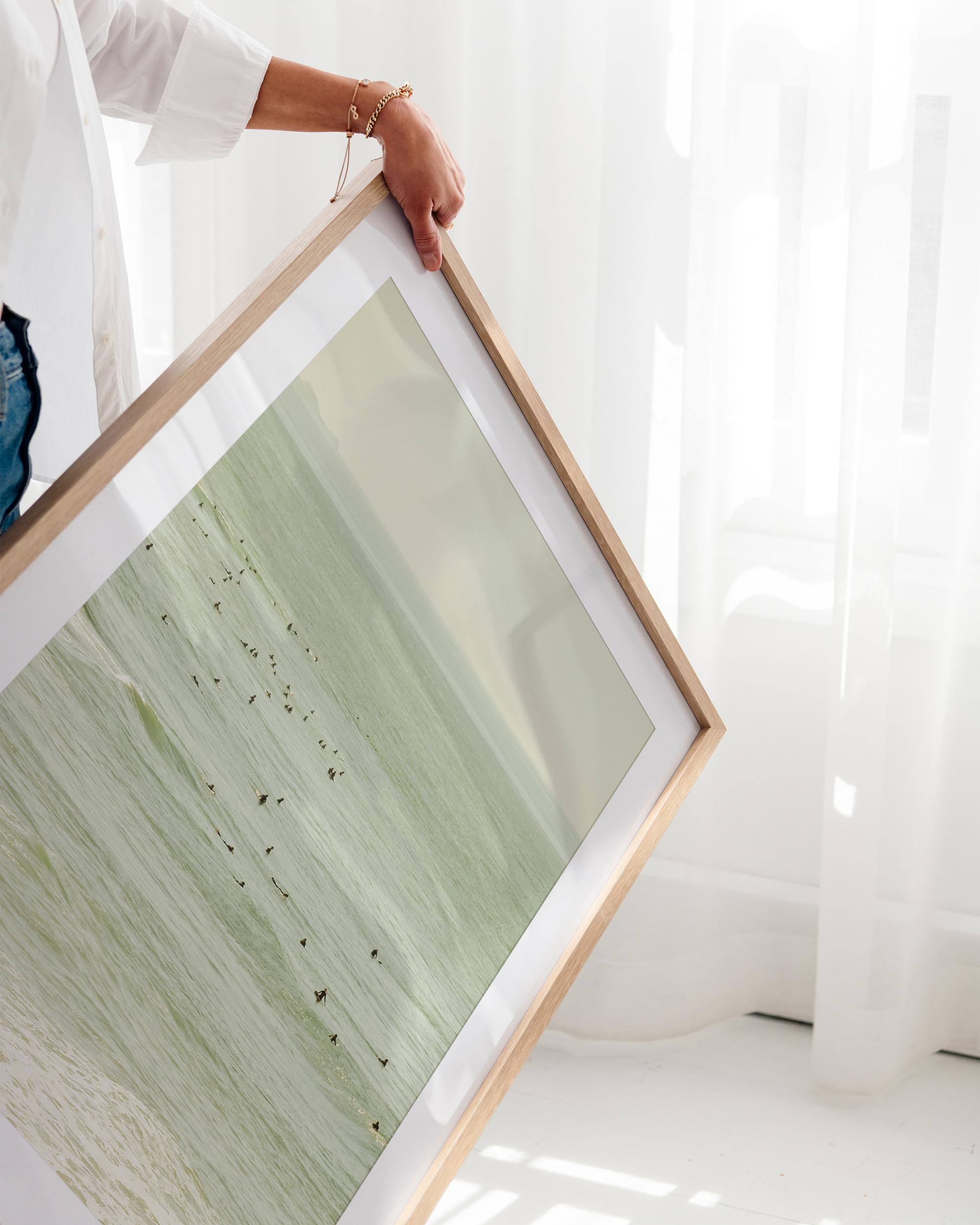 Each frame is crafted from solid ash, carefully milled and hand-finished to highlight the natural beauty of the wood. A specialist wax enriches the grain and protects the surface, giving a subtle lustre that endures for a lifetime. The box profile creates a strong gallery-style presence that draws the eye to the photograph. Assembled by hand and fitted with professional hardware, every frame arrives ready to hang from the moment you open the box.