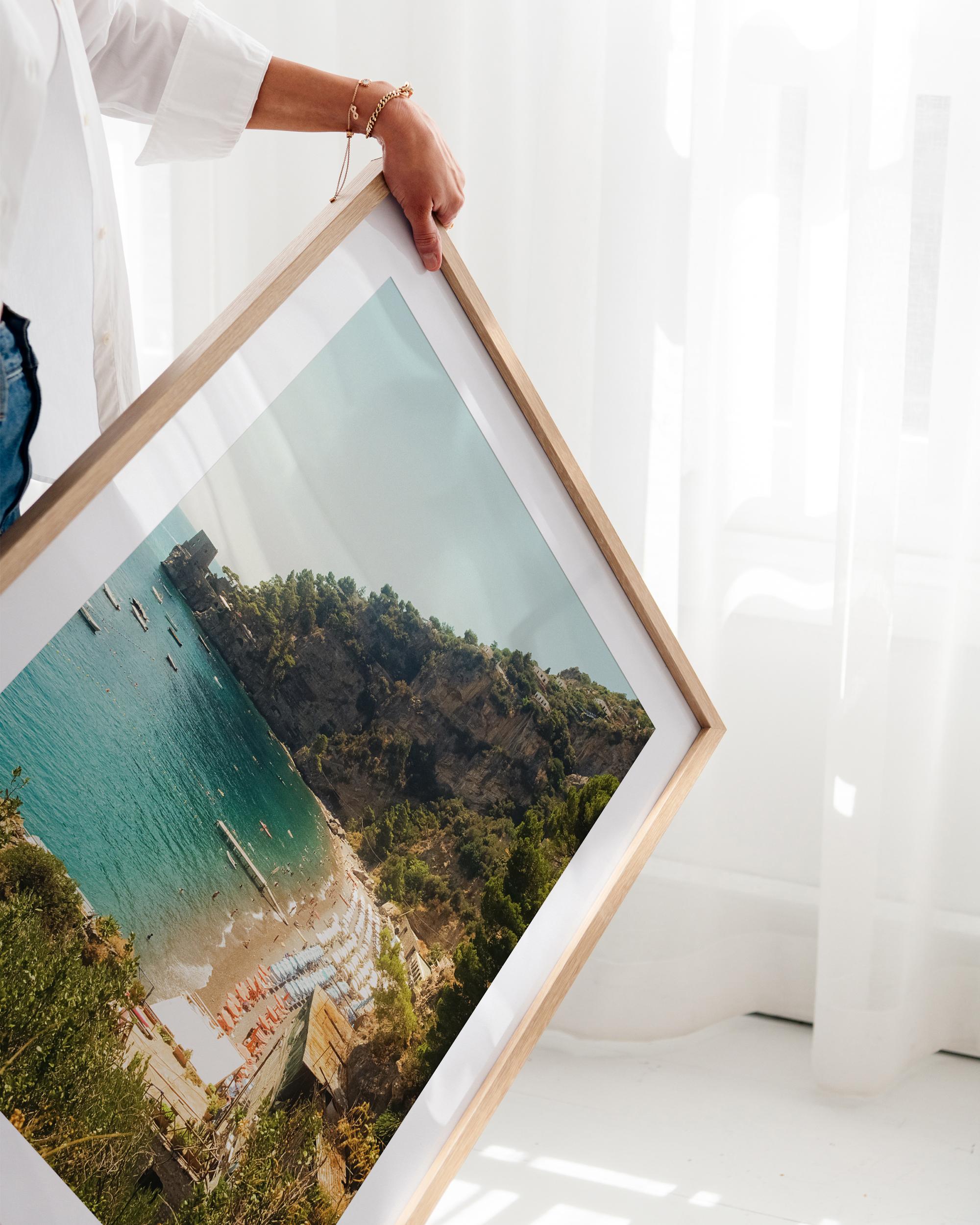 Each frame is crafted from solid ash, carefully milled and hand-finished to highlight the natural beauty of the wood. A specialist wax enriches the grain and protects the surface, giving a subtle lustre that endures for a lifetime. The box profile creates a strong gallery-style presence that draws the eye to the photograph. Assembled by hand and fitted with professional hardware, every frame arrives ready to hang from the moment you open the box.