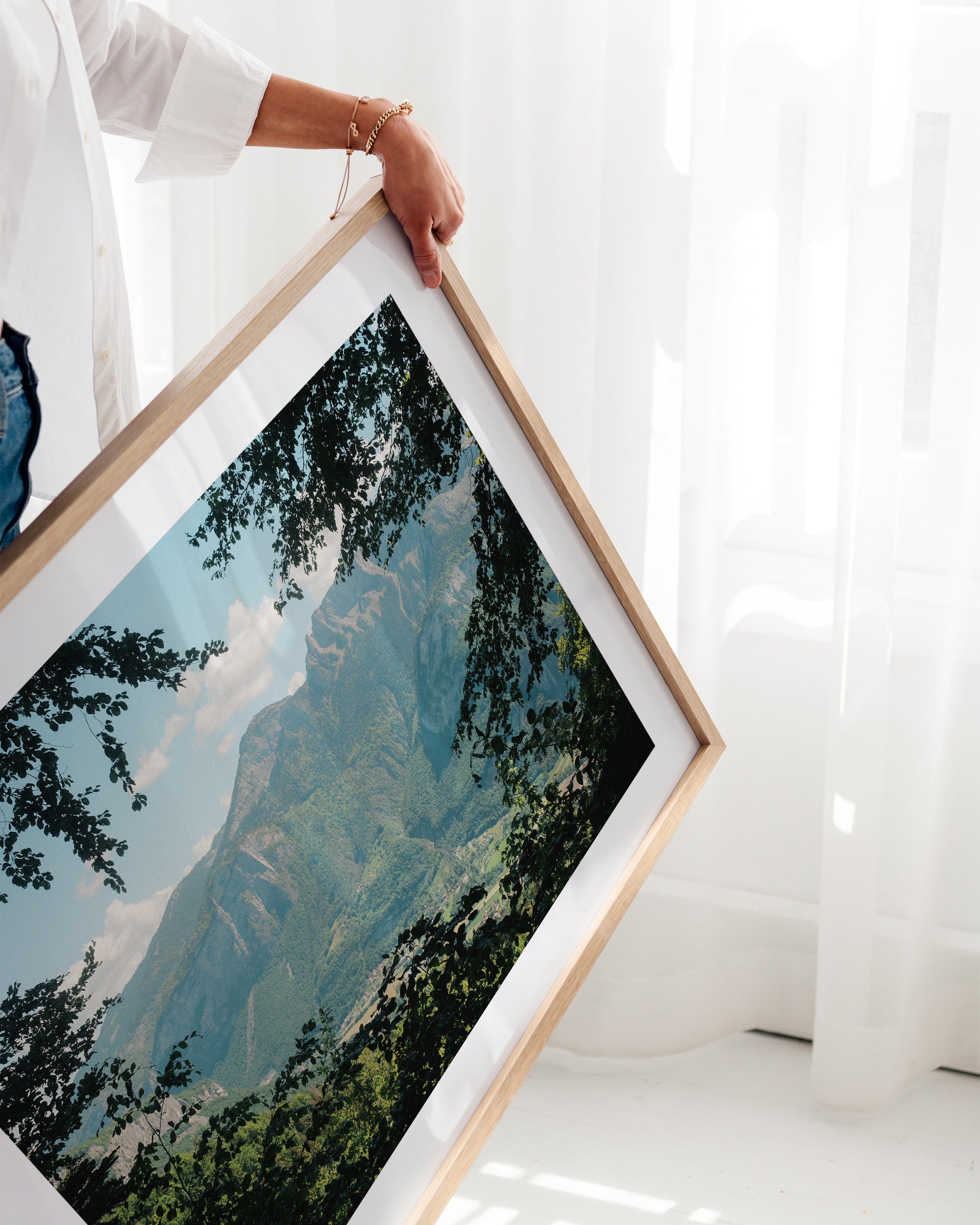 Each frame is crafted from solid ash, carefully milled and hand-finished to highlight the natural beauty of the wood. A specialist wax enriches the grain and protects the surface, giving a subtle lustre that endures for a lifetime. The box profile creates a strong gallery-style presence that draws the eye to the photograph. Assembled by hand and fitted with professional hardware, every frame arrives ready to hang from the moment you open the box.